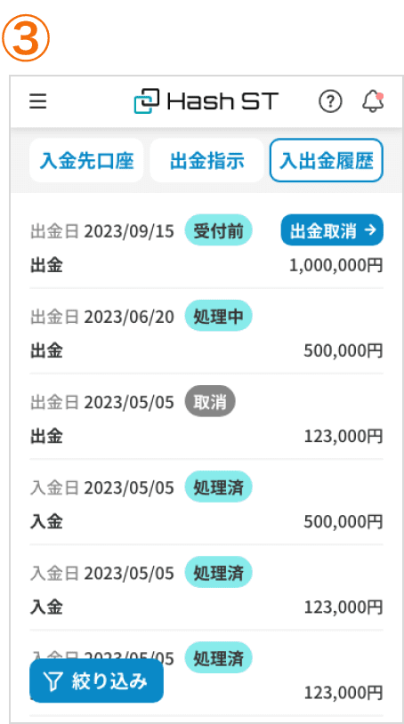 ご入金いただくための、お客様専用の口座情報をご確認いただけます。