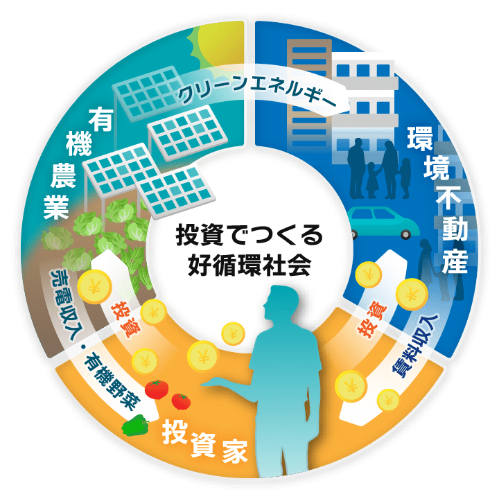 お客様へ提供する複数の投資機会はときに、相互に影響し合うエコシステムとして機能します。ソーラーシェアリングと環境不動産は別々の投資対象ですが、その2つをつなぎ合わせて好循環社会を描くことができます。これこそが、Hash DasHグループが⽬指すデジタル証券の世界観であり、これを実現する商品ラインナップを充実させて参ります。